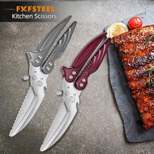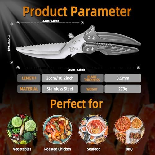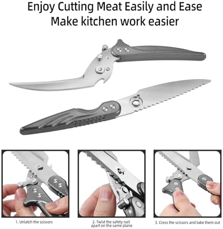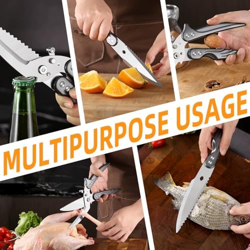 3. **Versatile Use**: Made of rust-resistant stainless steel, these kitchen shears cut through poultry, meat, bones, and herbs effortlessly. Perfect for chefs and home cooks.
