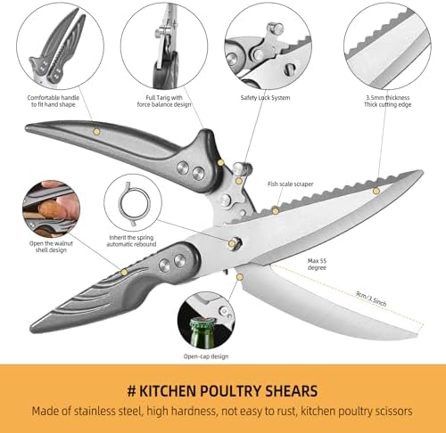 2. **Heavy Duty Construction**: Built with high-quality materials, these kitchen shears are designed to handle tough tasks such as cutting through meat, poultry, and bones with ease.