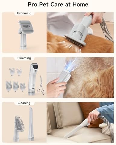 2-in-1 Trimming and Vacuuming: With integrated trimming and vacuuming functions, you can experience professional-level trimming at home without worrying about cleanup afterward, Truly stress-free for you and your furry friends. The cordless hair clipper can also be used independently from the pet vacuum.