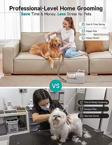 Sure! Our pet-friendly low noise can help reduce the pets’ anxiety, we also provide 5 sizes of Guard Combs of different lengths, which makes it ideal for long-haired or short-haired puppies, 2L large dust cup can reduce dumping times and save time.