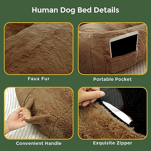 Our dog bed for human is a perfect gift for yourself or your loved ones who have pets. It is a unique and thoughtful way to show your appreciation and care for them. I highly recommend this human dog bed to anyone who is looking for a comfortable and spacious bed for themselves and their pets. It is worth every penny and it will make you and your pets happy and relaxed.