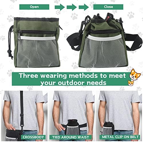 Multiple Ways of Wearing: the dog training treat pouch is designed with belt perforation, alloy hook, garbage bag hole and adjustable shoulder strap; You can slant it across your shoulder, fasten it around your waist with a belt (not included), choose the way you like to wear it