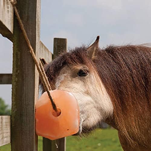 This Himalayan salt block is a natural, long-lasting mineral source for livestock. Designed with a rope for easy hanging, it provides vital nutrients for horses and other animals.