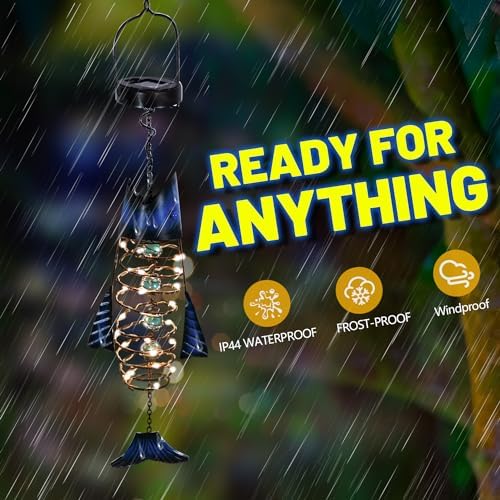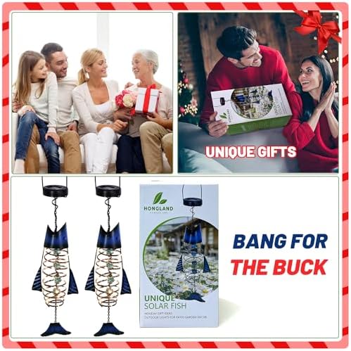 【Solar Lights for Hanging Outside】- These solar fish lights emit a warm, welcoming ambiance that makes them perfect for holiday decor, garden security lighting, front door or hallway lighting, and courtyard party decorations. They’re ideal for decorating yards, gardens, patios, lake houses, lawns, porches, gates, balconies, and beaches