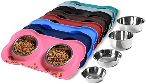 Hubulk Dog Bowls Stainless Steel Water and Food Feeder with Non Spill Skid Resistant Mat, Perfect for Dogs, Cats, Rabbits, Ferrets, Guinea Pigs, etc.