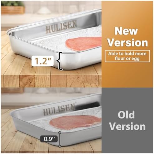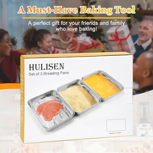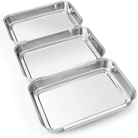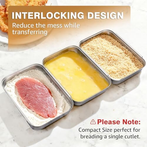 Save Place: Package including 3 pieces stainless steel breading pans, they stack for storage taking up less space. Oven safe, can used for baking cake.