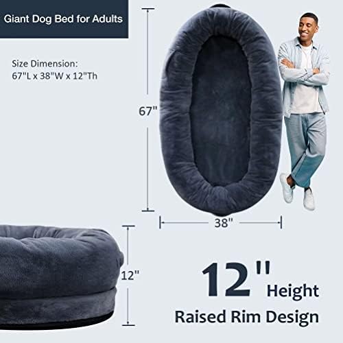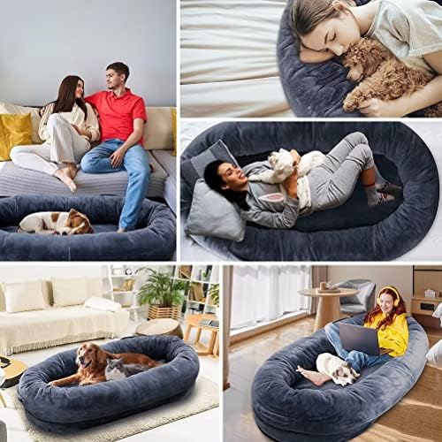 HUMAN SIZED DOG BED——The large human dog bed for people adults, it has large size 67″x38″x12″, designs with oval shape, soft and durable filler at the bolster and bottom will delieve your joint and muscle pain and relieve your stress and anxiety. You will fall in love enjoying warm and comfortable moment when you rest and relax. Portable handle makes it easy folded for storage and movementSOFT COZY DOG BED FOR PEOPLE——The giant human dog bed is designed with you and pets comfort in mind. Ultra soft plush material makes it super soft, comfy sleep surface with a skin-friendly texture bring immersive enjoyment. Polyester cotton stuffing bolster designed 12″Th raised rim provide head&neck support, plus high quality durable foam mattress to make it lastedANTI-SLIP BASE——The cozy soft human dog bed has a durable anti-slip PVC dot fabric bottom, this special design which can provide better stability and security when you sleep and restREMOVABLE&WASHABLE——Its removable cover that is easy to machine wash and quick-drying. Just easily take out the padding inside and close the zipper completely, then machine wash, it is recommended to wash and dry separatelyWIDELY USE&CUSTOMER TEAM——The human dog bed has large space that adults can relax and play games at home, or accompany your pets and children. If there are any questions, please freely contact with us asap, we will try best to solve it for you:)