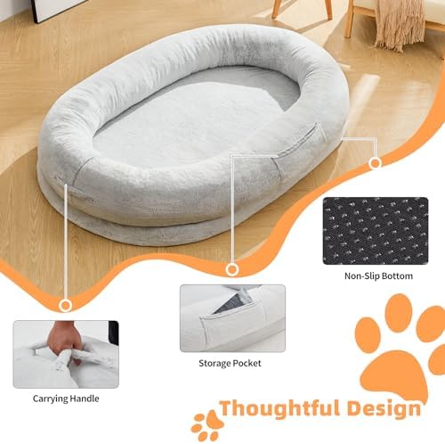 Wide-range in Application: Our human-used dog bed with versatile design can be added to the decoration of any different room. It could be used as a napping bed or sleeping mat, not only warm but also relaxing. The side carrying handle allows you to take it everywhere you need, to a bedroom, living room, or even in the office.