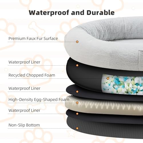 Ergonomic Design: The dog bed for humans is made of high-quality high-density foam, soft and supportive. The raised edges around the perimeter provide a sense of security and a thickened eggshell wave shape that conforms to the body’s curves and provides a personalized cushioned feel, preventing people from lying close to the ground and having strong support for the spine.