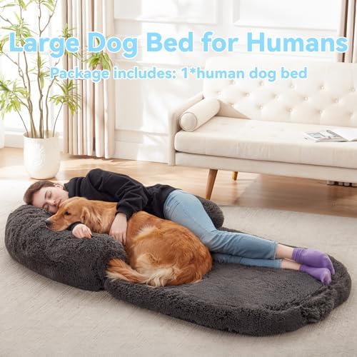Stress Relief & Package Contents: The human dog bed thick bolster allows you to tuck your hands and feet into it, just like lying in the arms of mom, warm, peace of mind. Effectively relieve your stress. The human bean bag dog bed is designed with anti-slip rubber particles on the bottom, keeping stable during rest and playing time. The dog bed package includes: 1xfoldable human dog bed. It is better to wash before use.