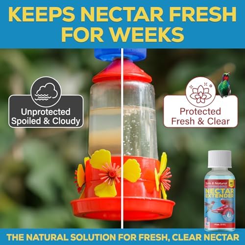 60+ USES PER BOTTLE – One bottle extends the life of up to 60 standard feeder refills (16oz) or 30 quarts of hummingbird feeder nectar. Keep your hummingbird feeders fresh and clean all season long with this concentrated formula. The ideal solution for nectar in hummingbird feeders, extending its freshness and reducing waste.