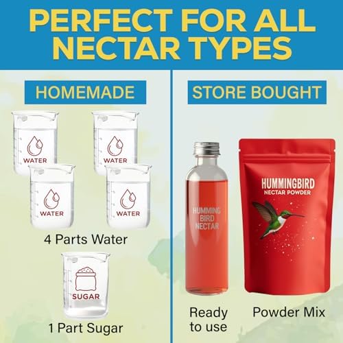 LESS CLEANING, MORE VISITS – Keep your feeders cleaner longer and support hummingbird activity. Works perfectly with any nectar solution – homemade sugar water, ready-to-use, or powder mix. Less waste, less cleaning, spend more time bird-watching.