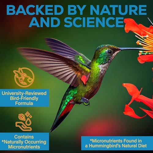 NATURAL HUMMINGBIRD NECTAR DEFENSE – Keep hummingbird nectar fresh and inviting for over 2 weeks and help hummingbirds avoid spoiled nectar. Ensure a crystal-clear, fresh feeder that supports clean, fresh nectar for every feeding. Made with bird-safe micronutrients found in their natural diet, free from artificial additives, compare to Nectar Defender.