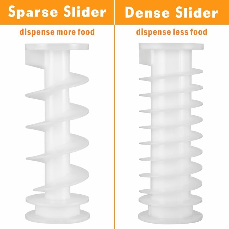 [Lasts up to Few Weeks] With a full load of food, the storage bin is 5.5 litre capacity which can feed your fish for several weeks, depending on how many fish you have and how big they are. Ideal for 4-10 mm pellets or sticks food, not for flake! Comes with 2 shaped sliders for your feeding requirement, slider with dense grooved rings can dispense less food for your fish. Vice versa