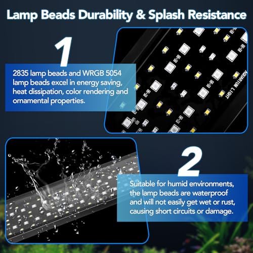 DURABILITY 6 ROWS OF LAMP BEADS: Fully sealed and waterproof LED lamp beads are not easy to get into water or rust, causing short circuit or damage. Suitable for aquariums in humid environments, ensuring that it can work for a long time without problems caused by water ingress