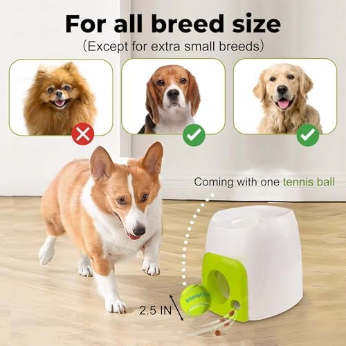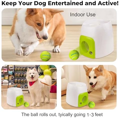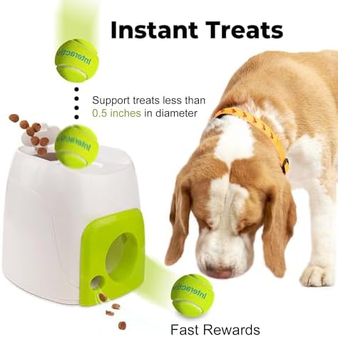 This is a puzzle toy designed to encourage your dog’s natural curiosity and reward-based learning. It is not a ball launcher. The ball gently rolls out about 1–3 feet, making it perfect for indoor play. For proper treat dispensing, please use dry kibble or hard treats with a diameter smaller than 0.5 inches. Using oversized or soft treats may cause blockage or malfunction.