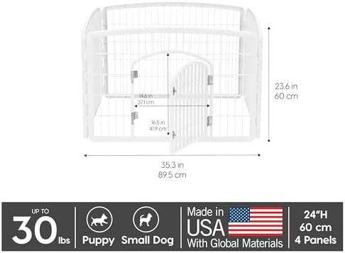 Take your pet’s playtime to the next level with the IRIS USA exercise playpen for extra small to medium sized dogs and other family pets. The easy assembly pen is as versatile as it is durable, giving you the option to use it as an indoor dog fence, play gate, dog play yard, or exercise pen and use it however you choose for years. Position it in different shapes to best suit your space capacities and fit your pet’s needs and relax with the knowledge that the non-skid rubber feet will keep the pen in place and protect your floors. Let’s make life a little easier for the whole family.