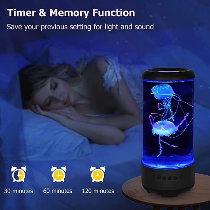 This jellyfish lamp will remember your previous setting for light and sound from the last time so you do not have to set up again.