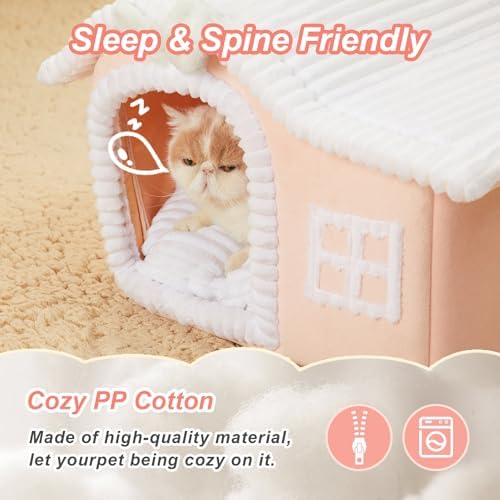 【Classic Design】– Design with chimney, window and white-bear door, this cartoon indoor cat house is also a classic small pet house for other small pets.