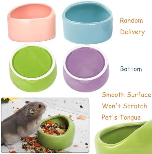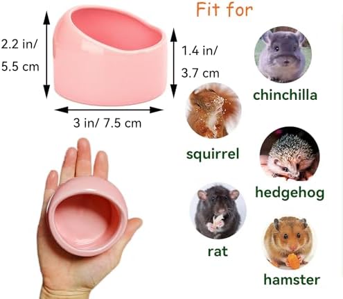 Small size: Does not occupy the cage space.Colorful Pet Bowl: Bright pink, yellow, green or blue make the bowl look cute and interesting and decorate your pet’s home.Right Capacity: They are very convenient for feeding dry food, snacks, and fresh, green food and control the hamster’s food intake.Use: It is recommended to place the bowl where the hamster defecates, away from the hamster bath.