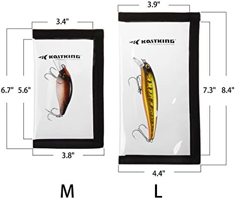 Available In Two Popular Sizes for Most Lures – KastKing MadBite Lure Wraps come packed 4 lure wraps per package and are available in two sizes. The large PVC window size is 7.48” x 3.89” and the small PVC window size is 5.67” x 3.38” when folded and attached to your rod.