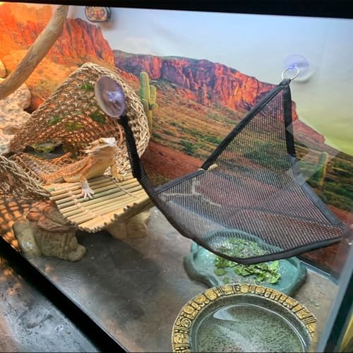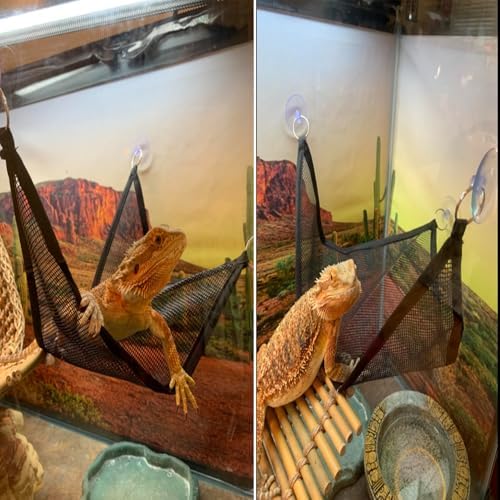 【Product Feature】Large mesh reptile hammock is comfortable and climbable lounger that all reptiles will enjoy,your pet can climb up and down and sleep on hammock for bearded dragon.nylon bearded dragon hammock is a breathable reptile hammock,so your pet will feel comfortable