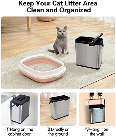 Easy to Clean: The litter bag presser design prevents the bag from falling out and makes it easy to collect litter. Multi-functional cat litter scooper holder allows you to clean the inner and outer buckets separately, making cleaning easier