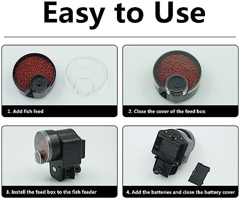 SUITABLE FISH FEED – Easy to adjust the slider on the feed box to setup the feeding food amount and multiple gears to adjust to meet the feed size. The feed is not easy to get wet, moldy and blocked. Suitable for the dry food, such as for pellets, granular, strip, powders and flake fish feeds.