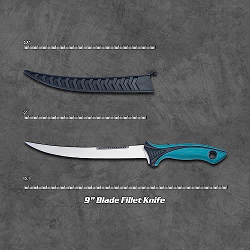 9″ Fishing fillet knife: our fishing fillet knife is specifically designed for precise and effortless filleting of fish. It has a sharp and flexible blade made from high-quality stainless steel, allowing you to cleanly and smoothly remove the skin and bones of the fish.