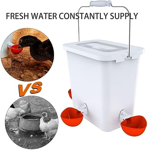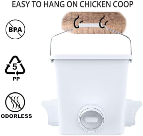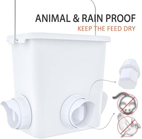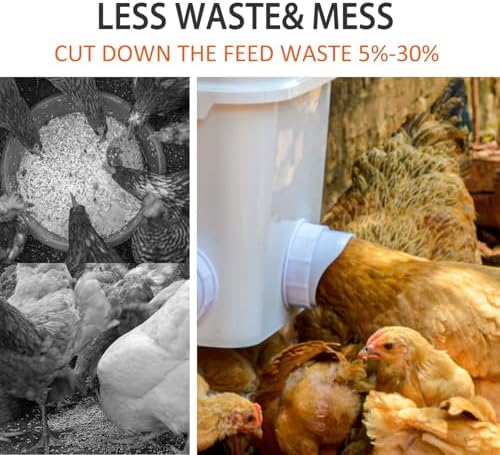 The chicken feeder was equipped with a lid to keep the feed dry and clean; the feeder port reduces the spillage to cut down the feed waste by 5%-25%, keep the coop less mess