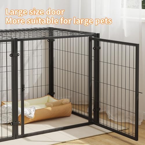 Designed to Be Safe and Comfortable: The dog crate has a large door, It can be installed on the front or side, and is easy to open and close. It features heavy-duty locks with dual latches, providing a safe and secure environment for your pet. The dog cage is designed to keep animals safe and comfortable, serving as a pet kennel, wire dog crate, or animal cage, even as a chicken coop.