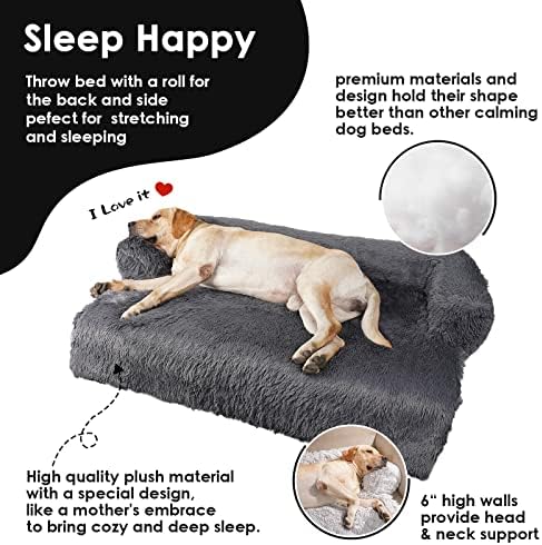 【More Comforatanble and Better Quality than Others】Dog bed made of high quality soft plush material, the plush is super soft, warm, fluffy and comfortable, feels like mom’s fur. Keep your dog off the cold floor, the surface plush is durable and not easy to fall off, avoiding your pet being suffocated by flying fleece, dog couch bed to create a healthy and pleasant sleeping environment, anti-anxiety, let your dog sleep well.