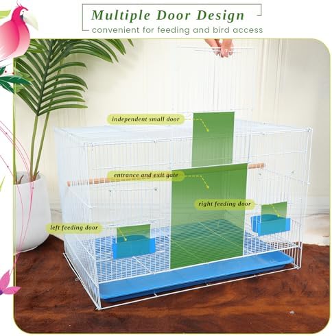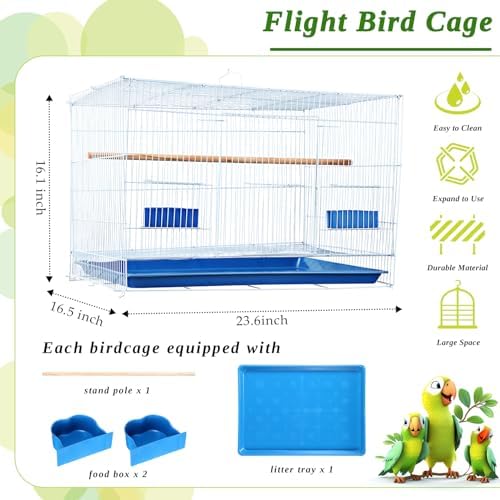 Large Space: the size of parrot cage is about 23.6 x 16.5 x 16.1 inches, which can provide enough space for activities without worrying about the parrot being tired or bored; This space allows the parrots to move freely inside the cage and perform their instinctive behaviors, such as flying and spreading their wings