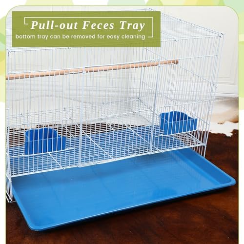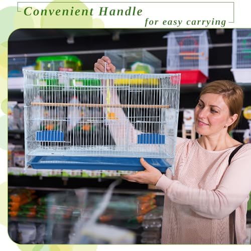There are handles on the top of the cage, which can be easily carried and transported. You can easily take your parrot with you whether you are at home or traveling. The bottom of the cage has a removable plastic tray for cleaning of bird droppings.