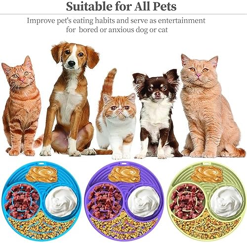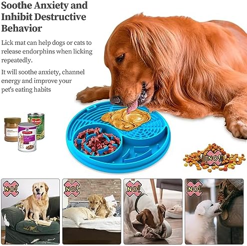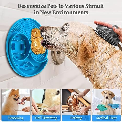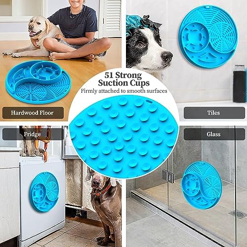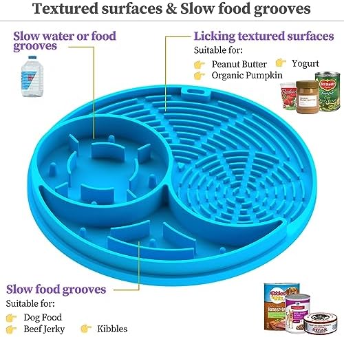 【Slow Feeder & Texure Design】 Textured surfaces design of this dog lick pad is for spreadable goodies like wet dog food, peanut butter or pumpkin. Grooves designed of this dog lick pad is for unspreadable dog treats such as nuts. This lick mat is perfect to extend the feeding time and aid digestion of dogs or cats.