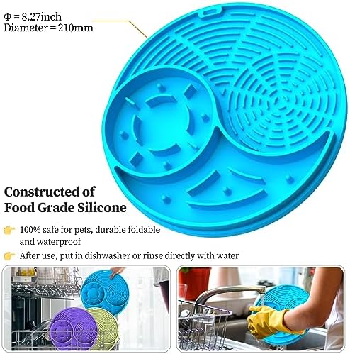 【Food Grade Silicone & Easy Clean】 A lick mat is a flat dog treats mat constructed of food grade silicone which is safe for pets, durable foldable and waterproof, after use, can put in dishwasher or rinse directly with water and it is freezer safe.