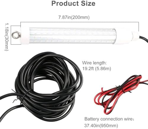 Easy Setup: The underwater fishing light comes with a 19.2 ft power cord and battery clip for quick setup. Its built-in weight ensures the light stays submerged during fishing activities