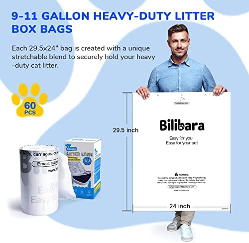 60 Litter Box Liners: This package includes 60 ultra-strong, opaque white, unscented, 9-11 gallon, 24″ W x 29.5″ H, 1 mil thick cat litter waste drawer bags. Each roll is tight and smooth, with no breakpoint and no heat-sealed bottom design