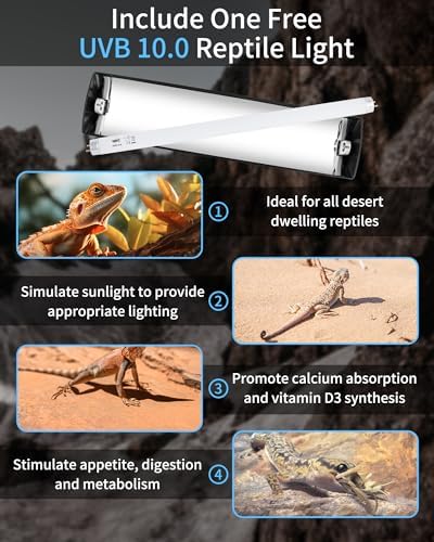 Excellent Lighting Effect – T8 uvb reptile light fixture kit provides higher brightness and more even lighting, creating a comfortable habitat for your pets. Colors are more vibrant and details are clearer when viewing reptiles. The 10.0 uvb light for reptiles is suitable for all desert area reptiles and amphibians, such as lizards, bearded dragons, chameleons, geckos, turtles, snakes, iguanas, frogs and more.