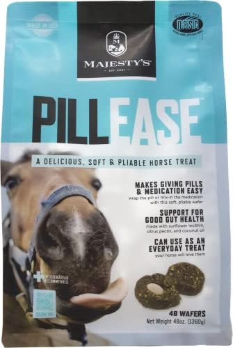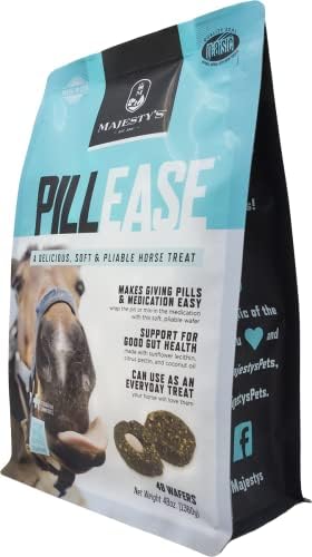 BREAKABLE – Majesty’s PillEase Pliable Pill Wrap Treats weigh in at 1 ounce per treat with the bag containing 48 treats. The best part about these treats is that they are no bake cookies, meaning they are soft and pliable allowing you to break them in half to better suite the pill size as well as the size of your horse.