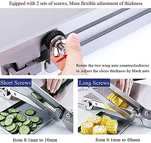 2. Slice Thickness: Adjustable from 0.1mm to 10mm (with Short Screws), from 0.1mm to 60mm (with Long Screws)