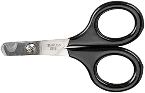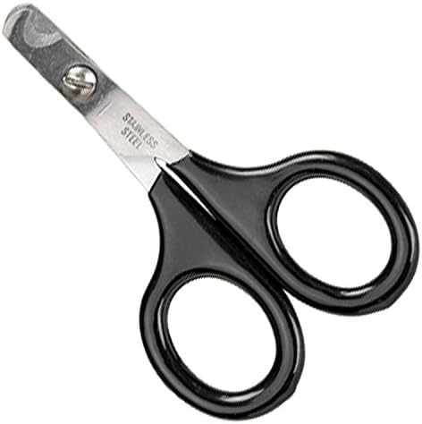 Master Grooming Tools stainless steel nail scissors with black vinyl-coated handles. Small scissors are ideal for cats and birds and are available in an angled version or a straight version with a finger rest. Each is blister-packed for retail. Items may be combined for quantity discounts. Available in small size. Measures 3-1/2-inch.