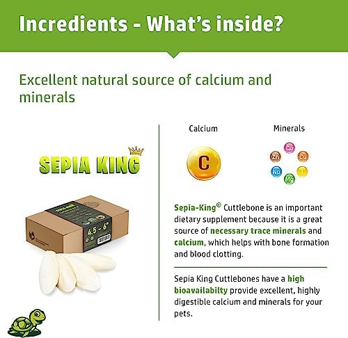 Cuttlefish bone products can be used in addition to their regular food. We suggest our 100% natural cuttlefish bone products. Sepia King Cuttlefish bones are the perfect habitat accessory for your pet! Feed them as whole, crushed, or ground into a calcium rich powder! (not for human consumption)