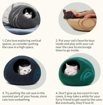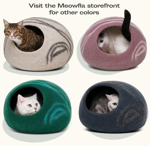 DUAL USE: Our felted wool cat cave provides a private personal space for your cat to hide, sleep and rest inside. But it also can be used as a cat bed to lay, relax and play on the top. Meowfia cat bed cave helps keep your kitty warm in the winter, and cool in the summer.
