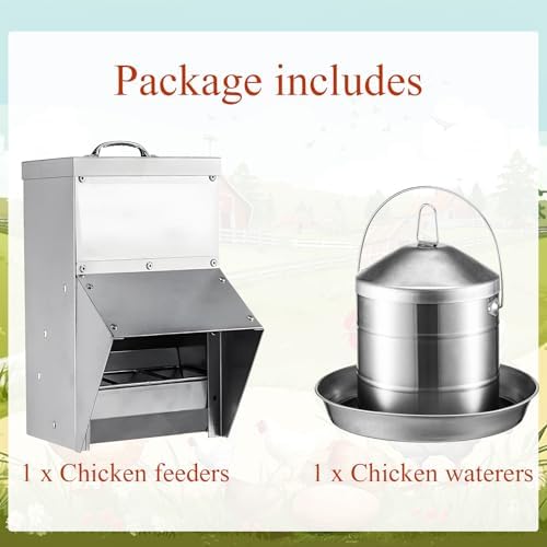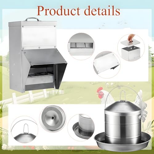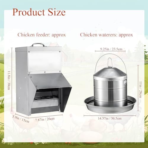 Proper Size: the poultry feeder measures approx. 7.87 x 5.91 x 11.81 inches/ 20 x 15 x 30 cm, with a large capacity of 11.5 lbs, and the chicken waterer measures approx. 14.37 x 9.25 x 11.02 inches/ 36.5 x 23.5 x 28 cm, with a capacity of 2.4 gallon/ 9 l, large enough to feed your poultry at the same time, suitable for most chicken farms and home use
