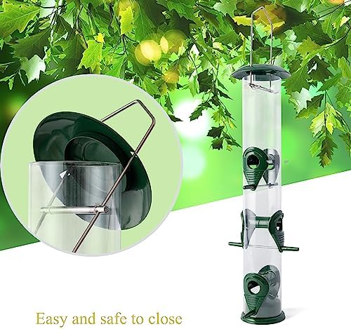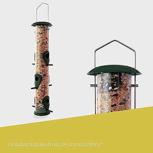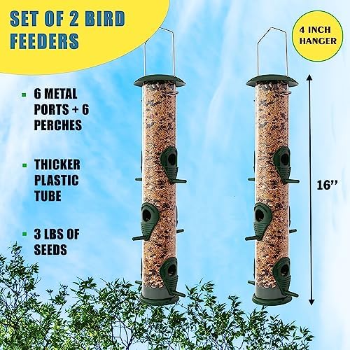 SET OF 2, EACH FEEDER HAS 6 FEEDING PORTS: 6 well-spaced feeding ports with perches allow multiple birds to feed at the same time. Transparent design makes it easy to see the seeds inside, attracting birds faster. For a wide variety of birds to eat, we suggest using mixed seeds.