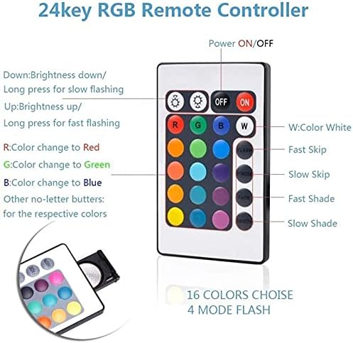 24 Key RGB Remote Controller–16 colors choise 4 mode flash.Light can be adjusted, colour can be adjusted, remote control operation, free your hands.