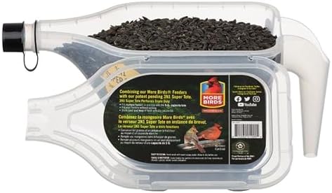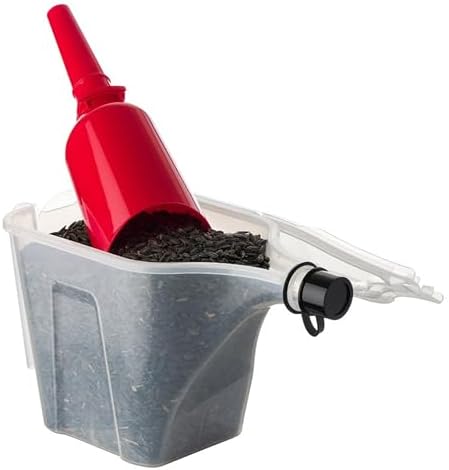 The tote’s tapered pour spout easily fills feeders with no spillage or waste. The cover attaches to seal the tote, keeping stored seeds fresh and protecting against infestation. The 3N1 Super Tote is stackable for convenient storage, while its easy-grip handle makes for comfortable carrying. Pairs perfectly with SureFill No Spill feeders. Avoid messy seed scoops and make fewer trips to your feeders with the 3N1. Easy filling. Every time.