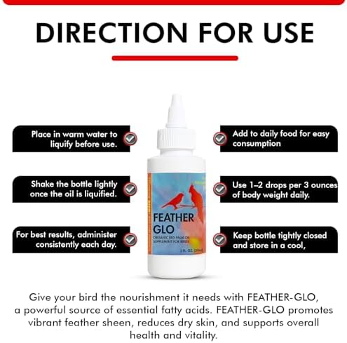 For all Breeds & Feather Types: From small birds to big birds, Feather-Glo is trusted for use across species. If your bird has small feathers, big feathers or fluffy real feathers, this oil encourages consistent growth and natural sheen.