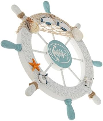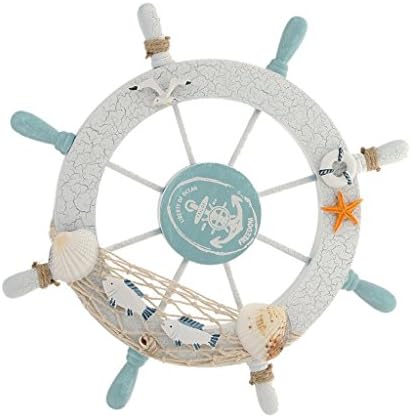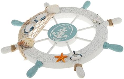 Color: As the pictures shown. Material: Wooden.Size: 11 * 11 inch(L * W).A perfect nautical wall hanging decor to accent your home.Ideal for those who love sailing and nautical wall art.Have eight spokes painted light blue and white, surrounding it and is easily mountable to a wall in need of a beach decoration.